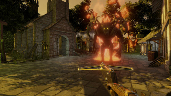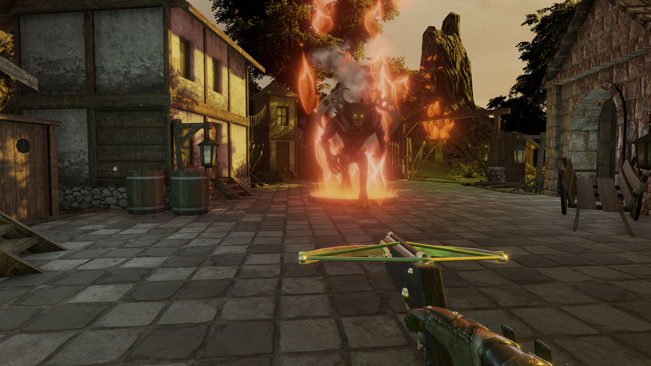 The player finds himself in a once beautiful and peaceful village, now abandoned, lonely and obscure. The story of the game reveals the seven deadly sins that are reflected within the game through hints and as a main theme to each place and character. The player has to brace up and be ready to defend himself against the infernal intruders. He has to face the mighty forces and ban the evil demon lords once and for all. “Dark Village VR” is developed and optimized to be experienced in virtual reality exclusively.